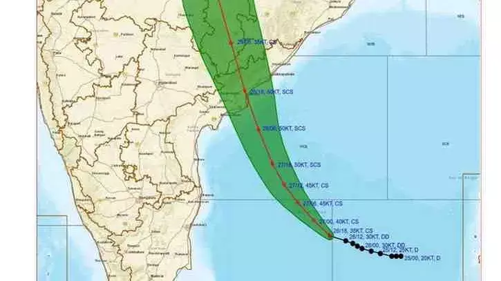 బంగాళాఖాతంలో ఏర్పడిన డీప్ డిప్రెషన్ ఇప్పుడు తుఫాను 'మొంథా'గా మారింది. గడచిన 3 గంటల్లో గంటకు 16-18 కి.మీ. వేగంతో పశ్చిమ-వాయువ్య దిశగా కదులుతోంది. ప్రస్తుతానికి చెన్నైకి దక్షిణ-తూర్పు దిశలో 600 కి.మీ., విశాఖపట్నంకి 710 కి.మీ., కాకినాడకి 680 కి.మీ. దూరంలో కేంద్రీకృతమై ఉంది. రేపు (అక్టోబర్ 28) ఉదయానికి తీవ్ర తుఫానుగా మారి, అదే రోజు సాయంత్రం/రాత్రి సమయంలో కానీ తర్వాత రోజు ఉదయం కానీ మచిలీపట్నం కళింగపట్నం మధ్య ఆంధ్రప్రదేశ్ తీరం దాటే అవకాశం ఉంది.