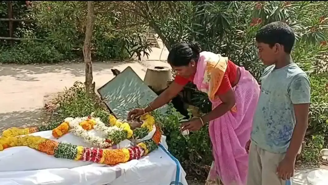 గత్యంతరం లేని స్థితిలో వీధిలోనే ఓ మంచంపై భర్త మృతదేహాన్ని పడుకోబెట్టింది. ఓ చిన్న గన్నేరునపూల మొక్క నీడలో ఉంచి. తల వద్ద దీపం వెలిగించిన వెంకటలక్ష్మి, హిందూ సంప్రదాయం ప్రకారం భర్త కాళ్లను ఒక్కటిగా చేసి, బొటనవేళ్లను కూడా తెల్లటిదారంతో కడుతూ, కన్నీటి పర్యంతమైంది. దగ్గరే ఉన్న ఇద్దరు కొడుకుల కంట కన్నీటిధారలు కనిపించాయి.