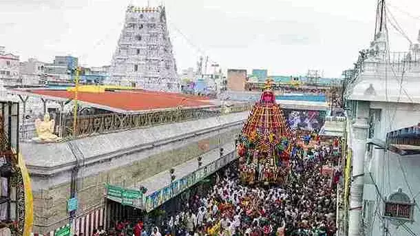 ఆకాశమంత ఎత్తైన రథాన్ని రంగురంగుల పరదాలతో సింగారించారు. దేశవిదేశీ పుష్పాలతో సుందరంగా అలంకరించారు. ఆ రథంపై పద్మావతీ అమ్మవారి విగ్రహాన్ని ఆశీనులను చేసి, నాలుగు మాడవీధుల్లో ఊరేగించారు. రథంపై విహరిస్తే పద్మావతీ అమ్మవారు మాడవీధుల్లో వేచి ఉన్న యాత్రికులకు దర్శనం ఇచ్చారు. సుమారు రెండు గంటలపాటు సాగిన ఈ రథోత్సవం యాత్రికులకు కనువిందు చేసింది.