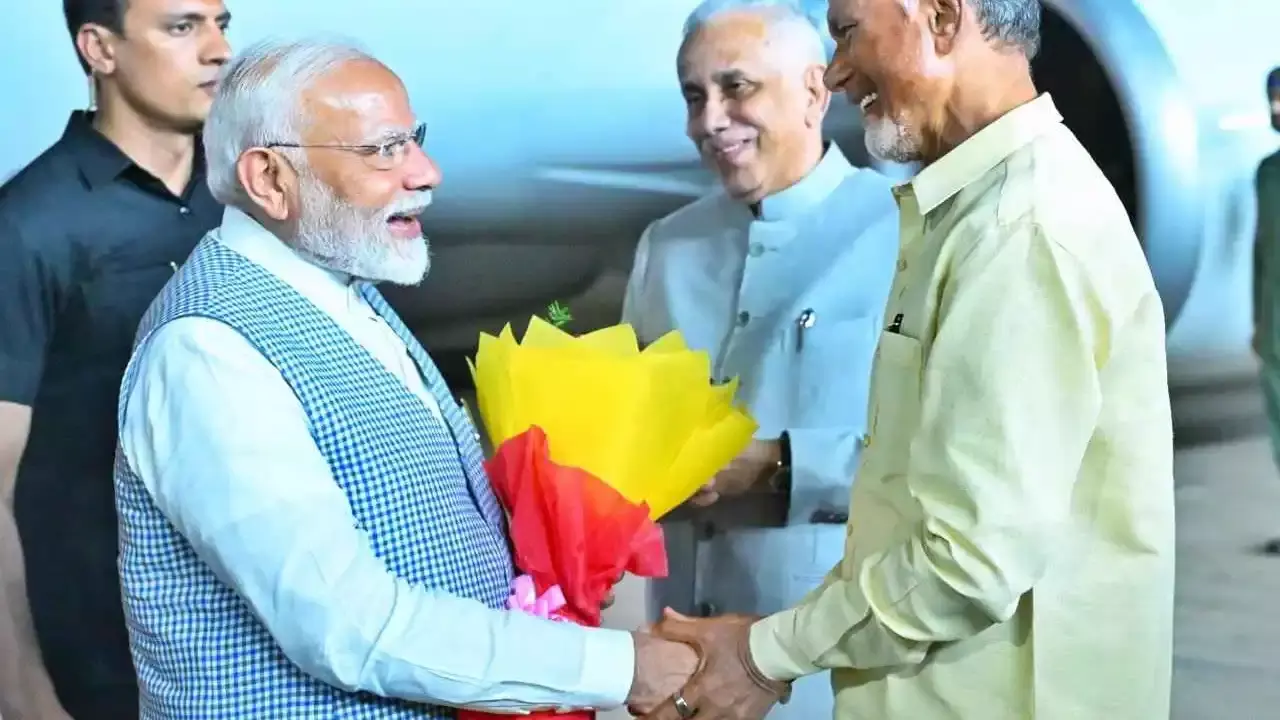 ఆయన విమానాశ్రయంలో రాష్ట్ర గవర్నర్, ముఖ్యమంత్రి చంద్రబాబు నాయుడు స్వాగతం పలికారు.