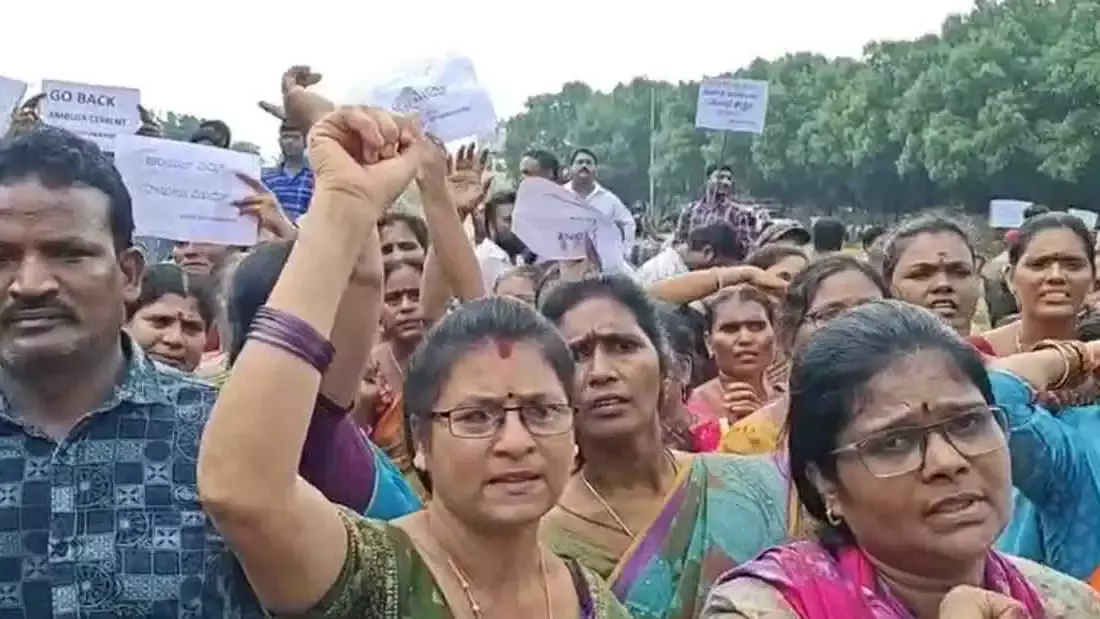 ప్రజల ప్రాణాలకు ముప్పు తెచ్చే కాలుష్య కారక సిమెంట్ కర్మాగారం ఏర్పాటును స్థానికుల ముక్తకంఠంతో వ్యతిరేకించారు. విశాఖ జిల్లా గంగవరం పోర్టు సమీపంలోని పెదగంట్యాడ వద్ద ఈ ఫ్యాక్టరీని అదానీ సంస్థ ఏర్పాటుకు సన్నాహాలు చేస్తోంది. ఏటా నాలుగు మిలియన్ టన్నుల సిమెంట్ గ్రౌండింగ్ సామర్థ్యం కలిగిన రెండు మిల్లులను స్థాపించాలని నిర్ణయించింది. ఇందులో భాగంగా బుధవారం నడుపూరు జిల్లా పరిషత్ హైస్కూల్లో అధికారులు పర్యావరణ ప్రజాభిప్రాయ సేకరణ చేపట్టారు. అయితే తమ ప్రాంతంలో సిమెంటు ఫ్యాక్టరీని అనుమతించేది లేదంటూ కొన్నాళ్లుగా ఆ ప్రాంత వాసులు ఆందోళన చేస్తున్నారు. అయినప్పటికీ బుధవారం ఉదయం 11 గంటలకు అధికారులు ప్రజాభిప్రాయ సేకరణకు ఉపక్రమించారు. వేదిక కోసం భారీ టెంట్లను వేశారు. పోలీసులను భారీగా మోహరించారు. అయినప్పటికీ స్థానికులు మహిళలతో పెద్ద సంఖ్యలో అక్కడకు చేరుకుని అంబుజా సిమెంట్ ఫ్యాక్టరీకి అంగీకరించేది లేదని నినాదాలు చేశారు. పోలీసులు వారిని నిలువరించే ప్రయత్నం చేసినా వెనక్కి తగ్గలేదు. ముందుకు దూసుకుపోయి టెంట్లను ధ్వంసం చేశారు. వేదికను కూల్చివేశారు. బ్యానర్లను చించి పడేశారు. కుర్చీలను విసిరి కొట్టారు.