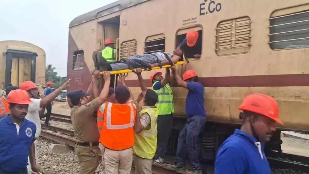 అది సింహాచలం రైల్వే స్టేషన్. సింహాచలం శ్రీవరాహ నరసింహస్వామి దేవస్థానానికి వచ్చి వెళ్లే భక్తులు ఆ స్టేషన్లోనే దిగుతారు.. ఎక్కుతారు. అలా భక్తులతో పాటు ఇతర ప్రాంతాలకు వెళ్లే ప్రయాణికులు ఆ స్టేషన్లో ఉన్నారు. తాము వెళ్లాల్సిన రైళ్ల కోసం ఎదురు చూస్తున్నారు. ఇంతలో భళ్లుమంటూ పెద్ద పేలుడు శబ్దం! అంతే.. అక్కడున్న వారిలో ఒక్కసారిగా అలజడి. కొందరు ప్రాణభయంతో తలోవైపు పరుగులు తీశారు. ఏం జరిగిందో తెలుసుకునే లోపే ఏదో రైలు ప్రమాదం జరిగిందని అర్థమైంది. రైల్వే స్టేషన్కు సమీపంలోనే పట్టాలు తప్పిన రైలు బోగీలు కనిపించాయి. అక్కడకు ఉరుకులు పరుగులతో రెస్క్యూ టీమ్లు, కుయ్ కుయ్మంటూ అంబులెన్సులు వచ్చాయి. వీరంతా రైలు బోగీల్లోకి అతికష్టమ్మీద Ðð ళ్లారు. అందులో చిక్కుకున్న వారిలో కొందరిని స్ట్రెచర్లపై బయటకు తీశారు. ప్రమాదంలో గాయపడ్డ (?) వారిని హుటాహుటీన అంబులెన్స్ల్లో ఆస్పత్రికి తరలించారు. మరికొందరికి అక్కడే ఉన్న వైద్య సిబ్బంది ఫస్ట్ ఎయిడ్ (ప్రాథమిక చికిత్స)ను అందించారు. ప్రయాణికులు, క్షతగాత్రులను రక్షించేందుకు సహాయ కార్యకలాపాలను చేపట్టారు. తీవ్రంగా గాయపడిన వారిని తీసుకెళ్లడం కోసం ఒక ఏసీ, రెండు నాన్ ఏసీ కోచ్లతో కూడిన రైలును రప్పించారు.