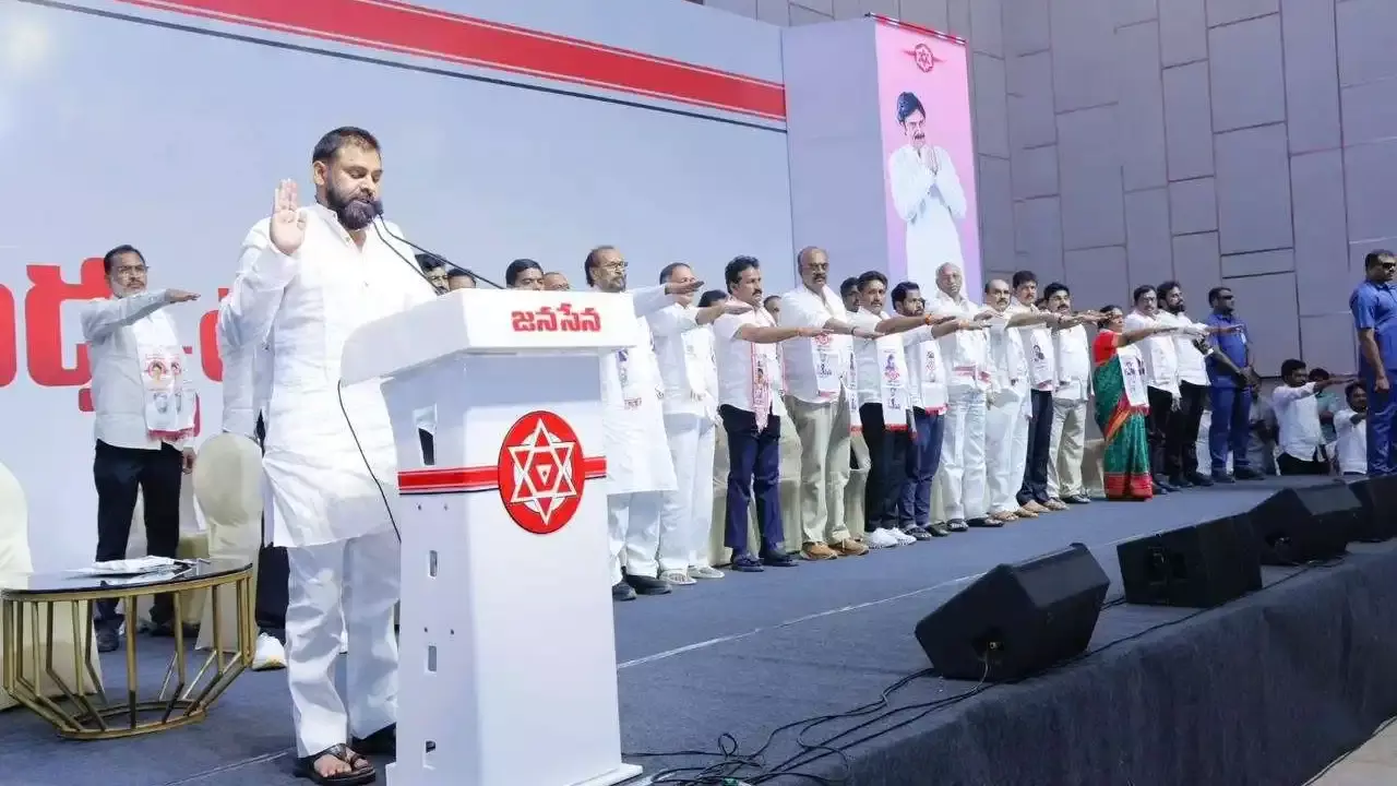 జనసేన సమావేశానికి మంగళగిరిలోని జనసేన పార్టీ కార్యాలయంలో హాజరైన నేతలు