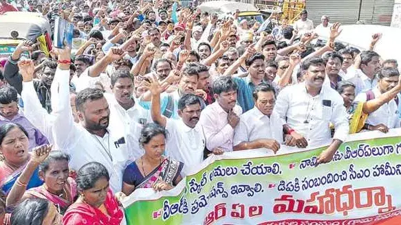 ఆంధ్రప్రదేశ్ రాష్ట్రవ్యాప్తంగా ఉన్న వేలాది మంది గ్రామ రెవెన్యూ సహాయకులు (VRA) తమ దీర్ఘకాలిక సమస్యల పరిష్కారం కోసం గళమెత్తారు. ఏపీ వీఆర్ఏ సంఘాల జాయింట్ యాక్షన్ కమిటీ (జేఏసీ) పిలుపు మేరకు మంగళగిరిలోని భూపరిపాలన ప్రధాన కమిషనర్ (CCLA) కార్యాలయం వద్ద మంగళవారం భారీ 'మహాధర్నా' నిర్వహించారు. రాష్ట్రంలోని అన్ని జిల్లాల నుంచి సుమారు 700 మందికి పైగా వీఆర్ఏలు ఈ నిరసనలో పాల్గొని ప్రభుత్వానికి వ్యతిరేకంగా నినాదాలు చేశారు.