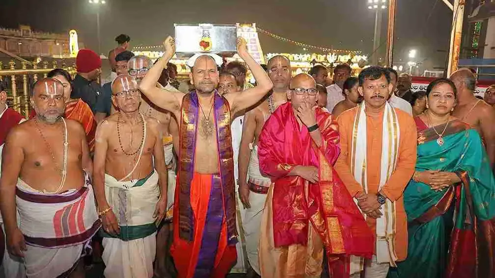 తిరుమల శ్రీవేంకటేశ్వరస్వామి ఆలయం నుంచి నూతన వస్త్రాలు, ఆభరణాలు, పసుపు, కుంకుమ ఇతర వస్తువుల సారె వెదురుబుట్టల్లో తీసుకున్న టీటీడీ చైర్మన్ బీఆర్. నాయుడు, ఈఓ అనిల్ కుమార్ సింఘాల్, అదనపు ఈఓ సీహెచ్. వెంకయ్య చౌదరి తోపాటు బోర్డు సభ్యులు తిరుచానూరుకు మంగళవారం ఉదయం బయలుదేరారు.