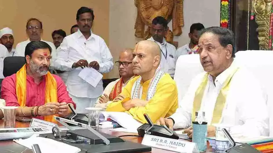 తిరుమల అన్నమయ్య భవనంలో మంగళవారం మధ్యాహ్నం ప్రారంభమైన పాలక మండలి సమావేశం సాయంత్రం వరకు జరిగింది. అనంతరం ఈఓ అనిల్ కుమార్ సింఘాల్, పాలక మండలి సభ్యులతో కలిసి చైర్మన్ బీఆర్. నాయుడు మీడియాతో మాట్లాడారు.