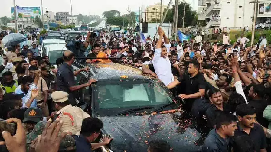 విశాఖ వేపగుంట జంక్షన్లో అభిమానులకు అభివాదం చేస్తున్న వైఎస్‌ జగన్‌