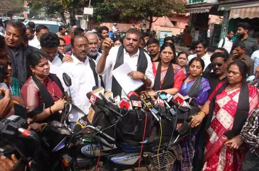 జీవీఎంసీ ఎదుట ఆందోళన చేస్తున్న వామపక్ష నేతలు