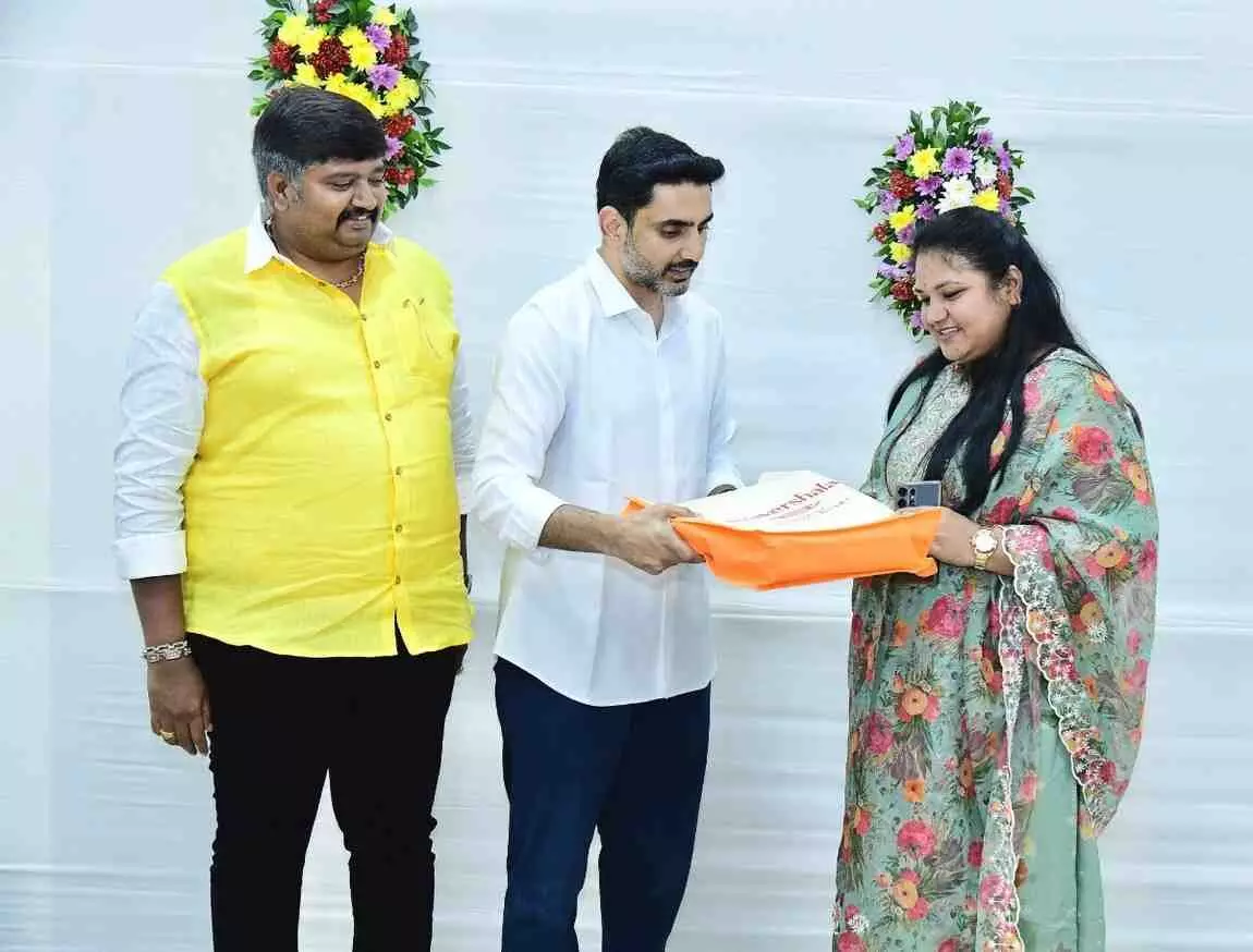 ఈ విందులో కేవలం రుచికరమైన భోజనం మాత్రమే కాదు, అంతకు మించిన ఒక అపురూపమైన మర్యాద కనిపిస్తోంది. విందుకు వచ్చిన ప్రతి మహిళా అతిథికి లోకేశ్ గారు స్వయంగా మంగళగిరి చేనేత పట్టుచీరలను బహుమతిగా అందజేస్తున్నారు. ఇది కేవలం కానుక మాత్రమే కాదు.. తన సొంత నియోజకవర్గమైన మంగళగిరిలోని చేనేత కార్మికుల నైపుణ్యాన్ని గౌరవించడం మరియు ఆ వృత్తికి అంతర్జాతీయ స్థాయిలో బ్రాండింగ్ కల్పించడం అనే గొప్ప సందేశాన్ని చాటుతోంది. ’ఆడపడుచులకు లోకేశ్ గౌరవం‘ అనే ట్యాగ్తో ఈ ఫోటోలు సోషల్ మీడియాలో విపరీతంగా ట్రెండ్ అవుతున్నాయి.