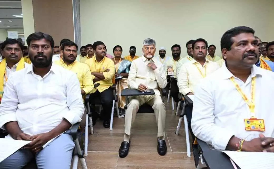 టీడీపీ పార్టీ ఆఫీసులో శిక్షణ తరగతులు జరుగుతున్నాయి.. అంతా సీరియస్గా నోట్స్ రాసుకుంటున్నారు. సరిగ్గా అదే సమయంలో మంగళవారం ముఖ్యమంత్రి చంద్రబాబు నాయుడు హఠాత్తుగా గదిలోకి ప్రవేశించారు. అయితే ఆయన వెళ్ళింది వేదిక ఎక్కి ఉపన్యాసం ఇవ్వడానికి కాదు. ఒక సామాన్య శిక్షార్థిలా మారి పాఠాలు వినడానికి. అక్కడ మాజీ మంత్రి పత్తిపాటి పుల్లారావు క్లాస్ చెబుతుంటే, ఏమాత్రం హడావుడి చేయకుండా అందరి మధ్యలో కూర్చొని ఒక క్రమశిక్షణ గల కార్యకర్తలా చంద్రబాబు విన్న తీరు అక్కడున్న వారిని ఆశ్చర్యపరిచింది. తనకున్న అపారమైన రాజకీయ అనుభవాన్ని పక్కన పెట్టి, పార్టీ భావజాలం.. కార్యకర్తల ప్రాధాన్యం గురించి చెబుతున్న ప్రతి మాటను ఆయన శ్రద్ధగా గమనించారు. అటు ముఖ్యమంత్రి కార్యకర్తలతో కలిసి పాఠాలు వింటుంటే, ఇటు మంత్రి నారా లోకేష్ ప్రతి బృందం దగ్గరకు వెళ్లి, సభ్యులతో ముచ్చటిస్తూ క్షేత్రస్థాయిలో ఏం జరుగుతుందో తెలుసుకోవడం గమనార్హం. తండ్రీకొడుకులిద్దరూ ఇలా క్యాడర్తో మమేకమై ’నాయకుడంటే నిర్దేశించడమే కాదు.. అందరితో కలిసి నడవడమే అని నిరూపించారని ఆ పార్టీ శ్రేణులు చర్చించుకుంటున్నారు.