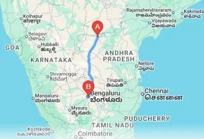 ఆంధ్రప్రదేశ్ నుండి బెంగళూరుకు వెళ్లేందుకు ప్రధాన రహదారి NH-44 (శ్రీనగర్ - కన్యాకుమారి హైవే). ఏపీలోని కర్నూలు నుండి బెంగళూరుకు వెళ్లే మార్గం వివరాలు ఇక్కడ ఉన్నాయి: