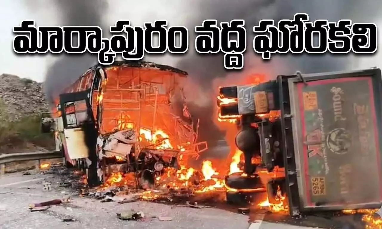 ఆంధ్రప్రదేశ్లోని మార్కాపురం జిల్లా రాయవరం సమీపంలో గురువారం ఉదయం ఘోర రోడ్డు ప్రమాదం సంభవించింది. తెలంగాణలోని జగిత్యాల నుంచి నెల్లూరు జిల్లా కలికిరి వెళ్తున్న 'హరికృష్ణ ట్రావెల్స్'కు చెందిన ప్రైవేటు స్లీపర్ బస్సు, పలకల క్వారీల వద్ద నిలిచి ఉన్న టిప్పర్ను అతివేగంతో ఢీకొట్టింది. ఈ ప్రమాదంలో ఇప్పటివరకు 20 మంది మృతి చెందగా, వారిలో 14 మంది సజీవ దహనమయ్యారు.