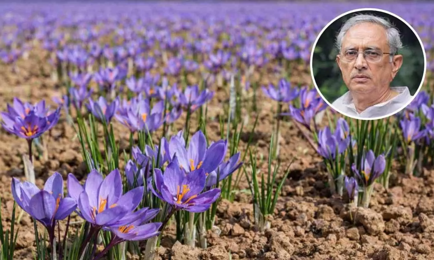 కుంకుమ పూవు తోట (ఇన్ సెట్ లో ఇంధనశాఖ మాజీ కార్యదర్శి ఈఏఎస్ శర్మ)