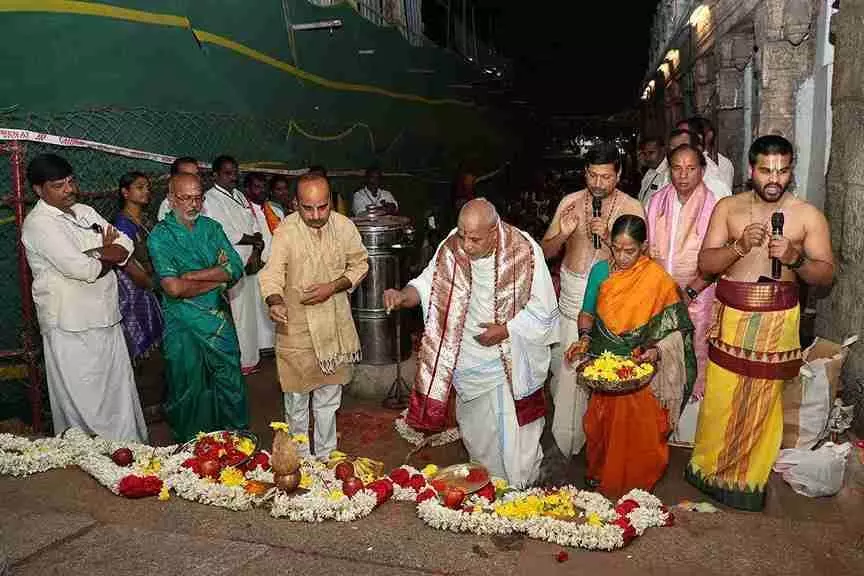 అలిపిరి పాదాల మండపం మెట్ల వద్ద (aliperi steps) సోమవారం వేకువజామున దాస సాహిత్య ప్రాజెక్టు ప్రత్యేకాధికారి ఆనంద తీర్థాచార్యులు పూజలు నిర్వహించారు. ఈ కార్యక్రమానికి తెలుగు రాష్ట్రాలతో పాటు కర్ణాటక నుంచి కూడా యాత్రికులు హాజరయ్యారు. కళాకారుల భజనలతో హరినామ సంకీర్తనలతో ఆ ప్రాంతం పులకించింది. ఇక్కడ పూజలు, హారతి సమర్పణ తర్వాత యాత్రికులు కాలినడకన తిరుమలకు బయలుదేరి వెళ్లారు. వందల సంఖ్యలో వచ్చిన భక్తులు సంప్రదాయ దుస్తులు ధరించి భజనలు చేశారు.