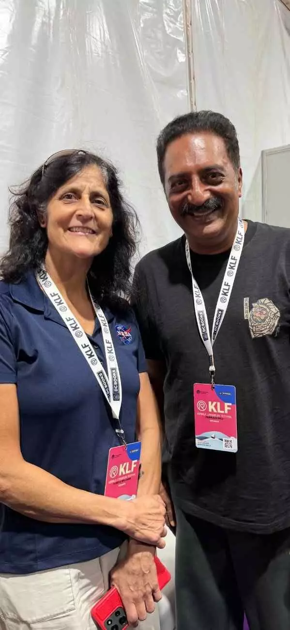 కేరళలోని కోజికోడ్ సముద్ర తీరంలో జరుగుతున్న ’కేరళ లిటరేచర్ ఫెస్టివల్ (KLF) 2026’ ఒక అపురూప కలయికకు వేదికైంది. భారత సంతతికి చెందిన దిగ్గజ వ్యోమగామి సునీతా విలియమ్స్ను విలక్షణ నటుడు ప్రకాష్ రాజ్ ప్రత్యేకంగా కలిశారు. ఈ సందర్భంగా వారిద్దరూ దిగిన ఫోటోలు ఇప్పుడు నెట్టింట తెగ వైరల్ అవుతున్నాయి.