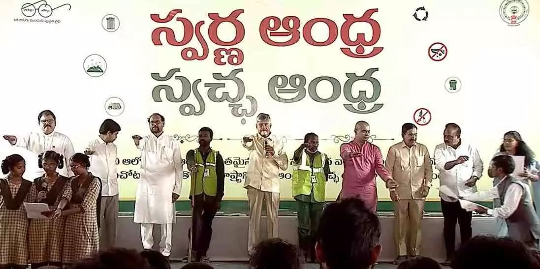 స్వర్ణాంధ్ర–స్వచ్ఛాంధ్ర కార్యక్రమంలో ప్రతిజ్ఞ చేస్తున్న సీఎం చంద్రబాబు