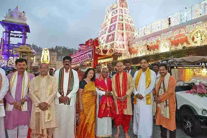 శ్రీవారి ఆలయంలో మారిషస్ దేశాధ్యక్షుడు ధరమ్ బీర్ గోకుల్ కు టీటీడీ చైర్మన్ బీఆర్. నాయుడు, ఇతర అధికారులను టీటీడీ ఈఓ అనిల్ కుమార్ సింఘాల్ పరిచయం చేశారు. ఈ సందర్భంగా ఆలయ విశిష్టత, ఆచారాలు, దర్శనాల వివరాలు వివరించినట్లు తెలిసింది. తిరుమల శ్రీవారి దర్శనంతో మారిషస్ దేశాధ్యక్షుడు ధరమ్ బీర్ గోకుల్ జిల్లాలో రెండు రోజుల ఆధ్యాత్మిక పర్యటన ముగిసింది.