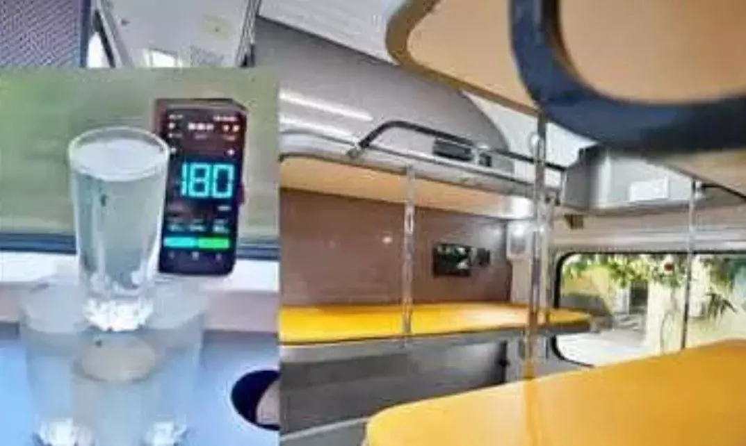 రైలు లోపల నుంచి తీసిన వీడియో, మొబైల్ స్క్రీన్ లో దాని వేగం గంటకు 182 కిలోమీటర్ల లకు చేరుకుందని చూపించింది. నీటితో నిండిన గ్లాసు కదలకుండా సంపూర్ణ సమతుల్యతతో ఉంది. ఇది రైలు స్థిరత్వాన్ని చూపుతోంది.