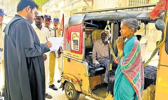 కోర్టుల్లోని బెంచ్ మీద జడ్జీలు కేసుల విచారణ చేపడుతుండటం సర్వసాధారణం...కానీ నడవలేని వృద్ధ దంపతులు ఆటోలో బోధన్ జ్యుడీషియల్ ఫస్ట్ క్లాస్ మేజిస్ట్రేట్ కోర్టు ఆవరణలోకి వచ్చినా కోర్టు హాలులోకి నడిచి రాలేక పోయారు. అంతే వృద్ధ దంపతుల పరిస్థితిని చూసి చలించిపోయిన బోధన్ జ్యుడీషియల్ ఫస్ట్ క్లాస్ మేజిస్ట్రేట్ సాయి శివ బెంచ్ దిగి కోర్టు ఆవరణలోకి వచ్చి ఆటో దగ్గర ఉన్న వారిని విచారించి అక్కడికక్కడే సత్వర న్యాయం చేశారు.