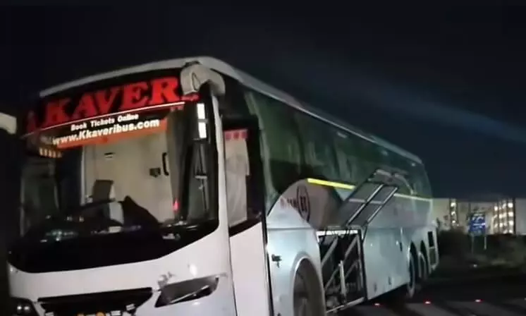 కర్నూలు సమీపంలోని టిడ్కో గృహ నిర్మాణ సమయం లో ప్రయాణిస్తున్న కావేరి ట్రావెల్స్ బస్సు మంగళవారం వేకువజామున అదుపుతప్పింది. ఆ వేగానికి డివైడర్ ను ఢీకొట్టిన కావేరీ ట్రావెల్స్ బస్సు ఎదురుగా ఉన్న రోడ్డుపైకి దూసుకుపోయింది. ఆ సమయంలో ఎదురుగా ఎలాంటి వాహనాలు రాకపోవడం వల్లనే భారీ ప్రాణ నష్టం తప్పినట్లు పోలీసు వర్గాలు చెబుతున్నాయి.